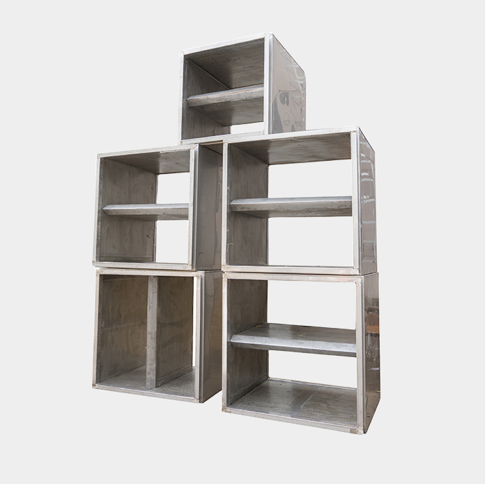 吸聲片內(nèi)填充的吸聲材料是玻璃纖維或礦棉,為了防止高達(dá)25m/s氣流對填料的沖蝕,用鍍鋅穿孔板作為其外表面保護層。標(biāo)準(zhǔn)的吸音材料可在高達(dá)350°C的環(huán)境中連續(xù)使用。選用其它吸聲材料和不銹綱結(jié)構(gòu)可用于高達(dá)950℃的場合。